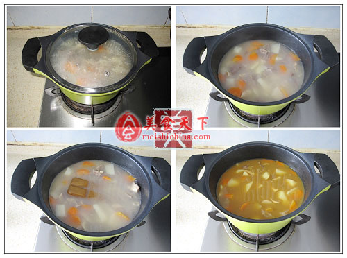 6、盖锅盖,闷煮20分钟左右,至土豆绵粉;