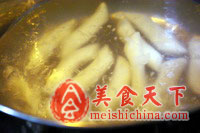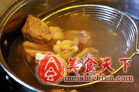 1、锅中倒入清水,煮沸后放入排骨,焯烫至排骨完全变色捞出。