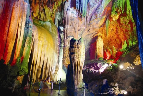 湖北通山隐水洞地质公园位于湖北核电之都——通山县大畈镇境内,隐水洞是湖北省首个地质公园,溶洞全长5158米,洞体规模宏大,气势雄伟,平均高30米,宽25米,洞内钟乳石林立,拟人状物惟妙惟肖,峡流相映,瀑洞相融。隐水洞内有十分丰富的地下溪流岩溶地貌等地质景观,极具旅游开发和科学研究价值。隐水洞开发进展顺利,投资了1000多万元的导流明渠、通洞公路和水坝工程已经竣工,并于2005年对外开放,接待游客。距武汉市130公里,距即将开工建设的第一座内陆核电站7公里。地质公园交通便利,区位优势明显,向北可通达咸宁、武汉,向东通黄石和江西九江,向南可达江西南昌,向西可进入崇阳、赤壁与京广铁路、京珠高速公路相连进而可通达湖南岳阳和长沙。已经建设完工的核电专用公路从洞口经过,拟建的大(庆)——广(州)、杭(州)——瑞(丽)两条高速公路也在距洞口800米处互通,形成四通八达的交通网络,属咸宁市通山县大力发展旅游产业“一线”、“两圈”之一。是湖北旅游界一颗正在冉冉 升起的璀璨新星。隐水洞的游览分三部分:上游1/3乘船观光,中游1/3乘小火车游览,下游1/3步行零距离接触古老而神奇的岩溶地貌,独特的游览方式亚洲第一。