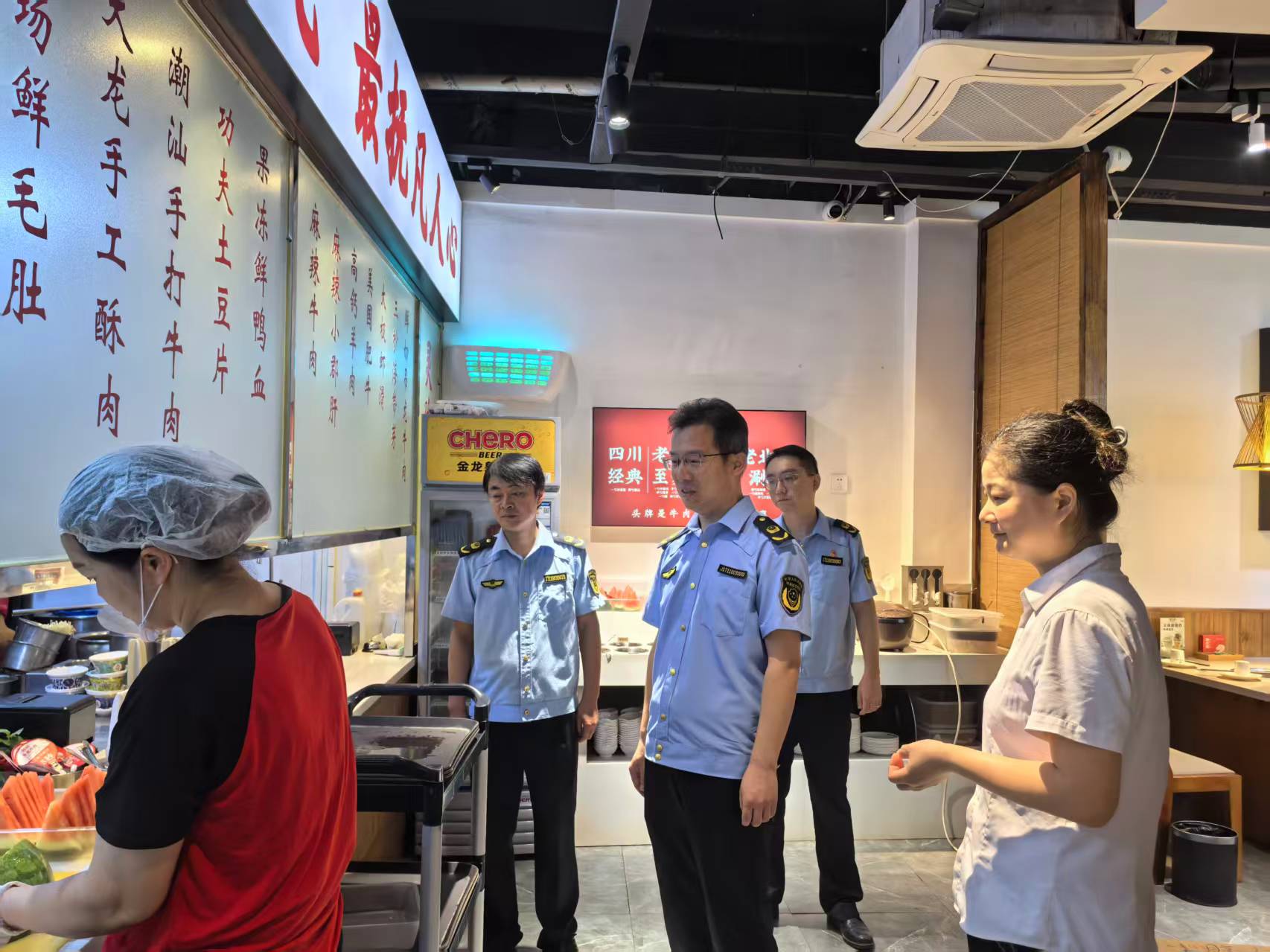 当天,检查组还前往月亮湾网红街区、相关药品销售单位,就食品安全、药品安全、市场保供等方面情况,维护市场价格秩序,切实保障广大消费者权益。
