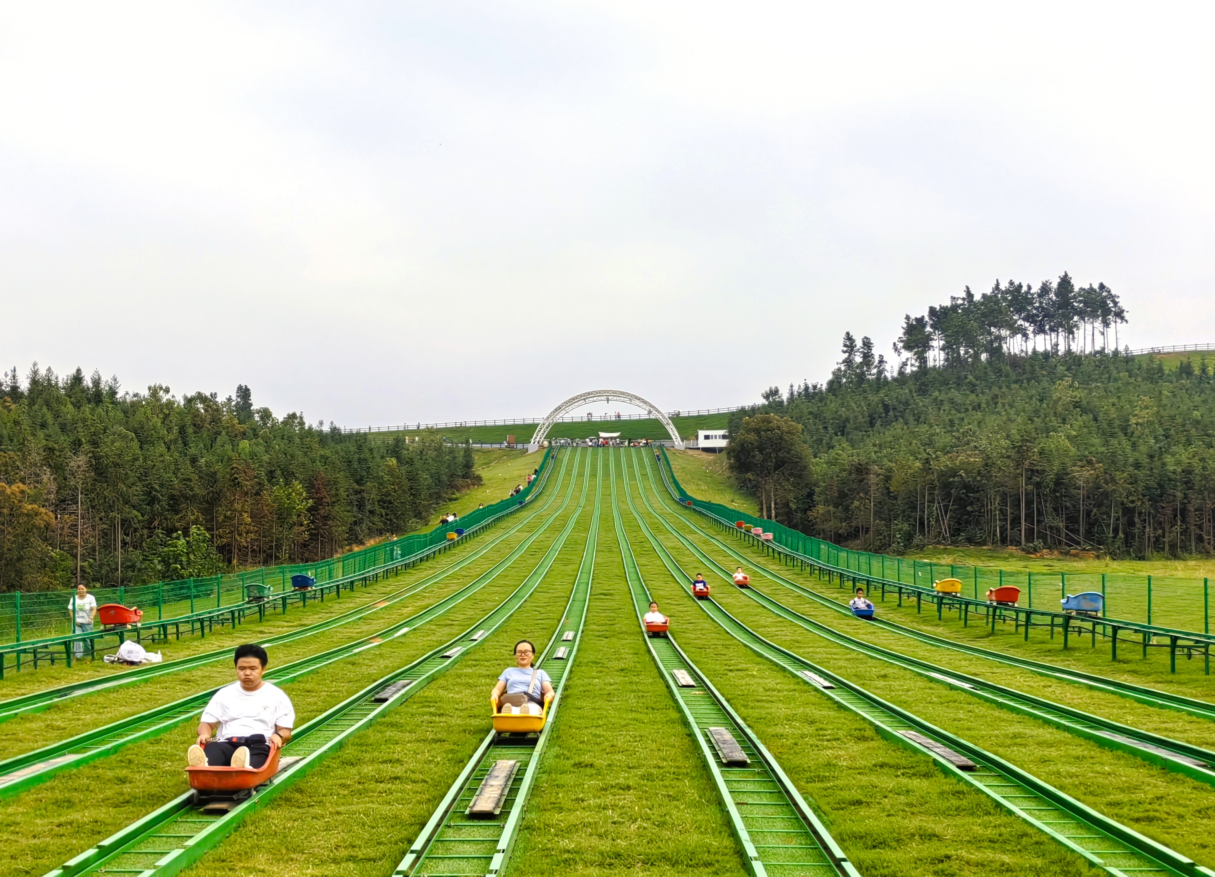 蜜泉滑草区,长达313米的滑道从山顶延伸至山脚,游客乘坐在滑草车内顺着滑道飞驰而下,两侧绿意掠眼,畅快非常;“哐哐哐”,一辆迷你小火车慢悠悠地行驶在草原上,车轮碾过,在柔软的草地上留下浅浅的印迹,迎面清风吹拂,十分惬意。动与静、快与慢之间,满是秋日草原的鲜活与美好。