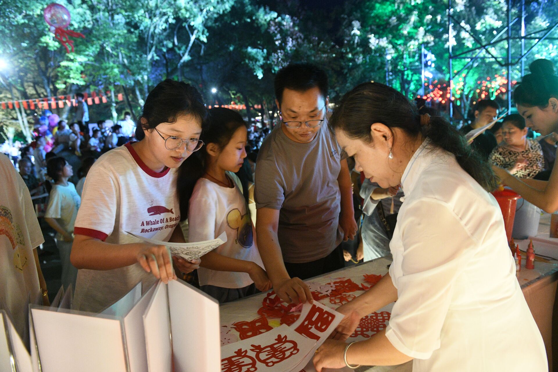 非遗文创赠送区,除了雕版拓印外,活动承办单位咸宁市美术馆还精心准备了书法飘漆扇、非遗剪纸等免费文创礼品喜迎“双节”,向广大市民和来咸过节的游客献礼。