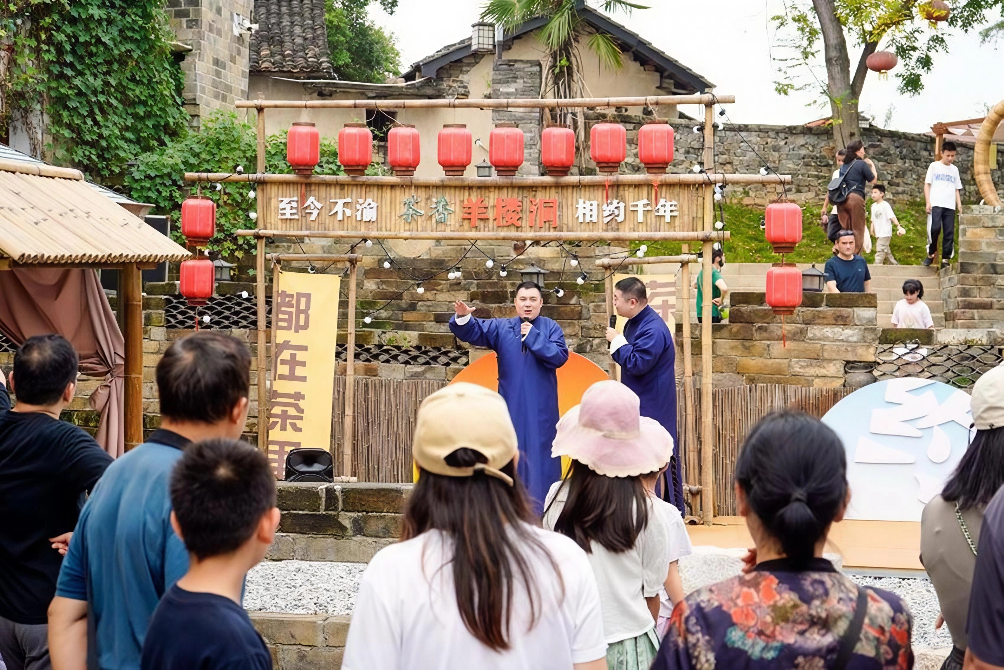国庆中秋双节同庆,赤壁市羊楼洞古镇以“月满中秋・茶香羊楼”为核心主题,推出赤壁青砖茶品鉴、汉服沉浸式游览、特色文艺展演、“欧卡擂台”欢唱及地方小吃体验等多元项目,让八方游客在古街深巷中既能感受节日的喜庆暖意,又能触摸古镇的文化底蕴。