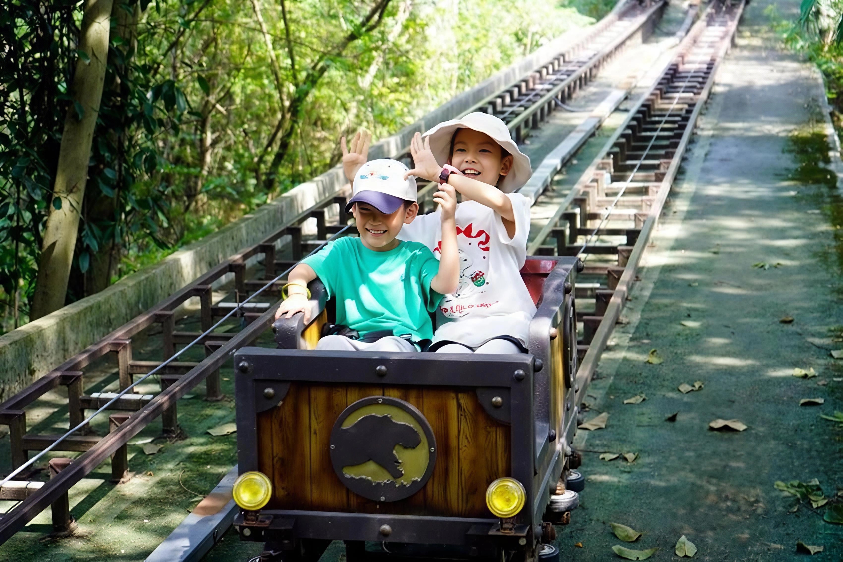 除了湖景游船,景区内的探秘岛与精灵岛也成为游客热门打卡地。在这里,游客可解锁多重新鲜体验:乘坐矿山车穿梭林间,动手参与恐龙化石挖掘、矿坑挖宝,或是在“萌宠部落”与小动物亲密互动,在自然野趣与人文探险中收获乐趣。景区负责人介绍,双节期间景区特别推出“一票通玩”限时福利,原价220元的核心游玩项目套票,现价仅需99元,让游客在互动中切实感受“醉了时光”的惬意。