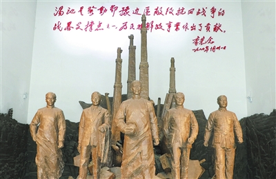 拾阶而上进入纪念馆大门,陶铸、李范一等5名汤池训练班委员会委员的全身铜像伫立在此。再往左边陈列厅走,陈列着多方收集的汤池训练班师生百余幅照片以及大量实物、资料,生动再现革命先辈当年的学习、战斗、生活场景。